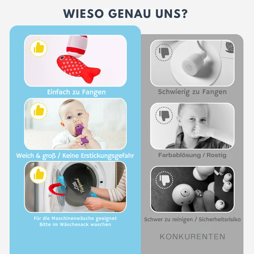 Das Greifen und Fangen der kleinen Teile schult die Fingerfertigkeit und die Hand-Auge-Koordination deines Babys spielerisch.