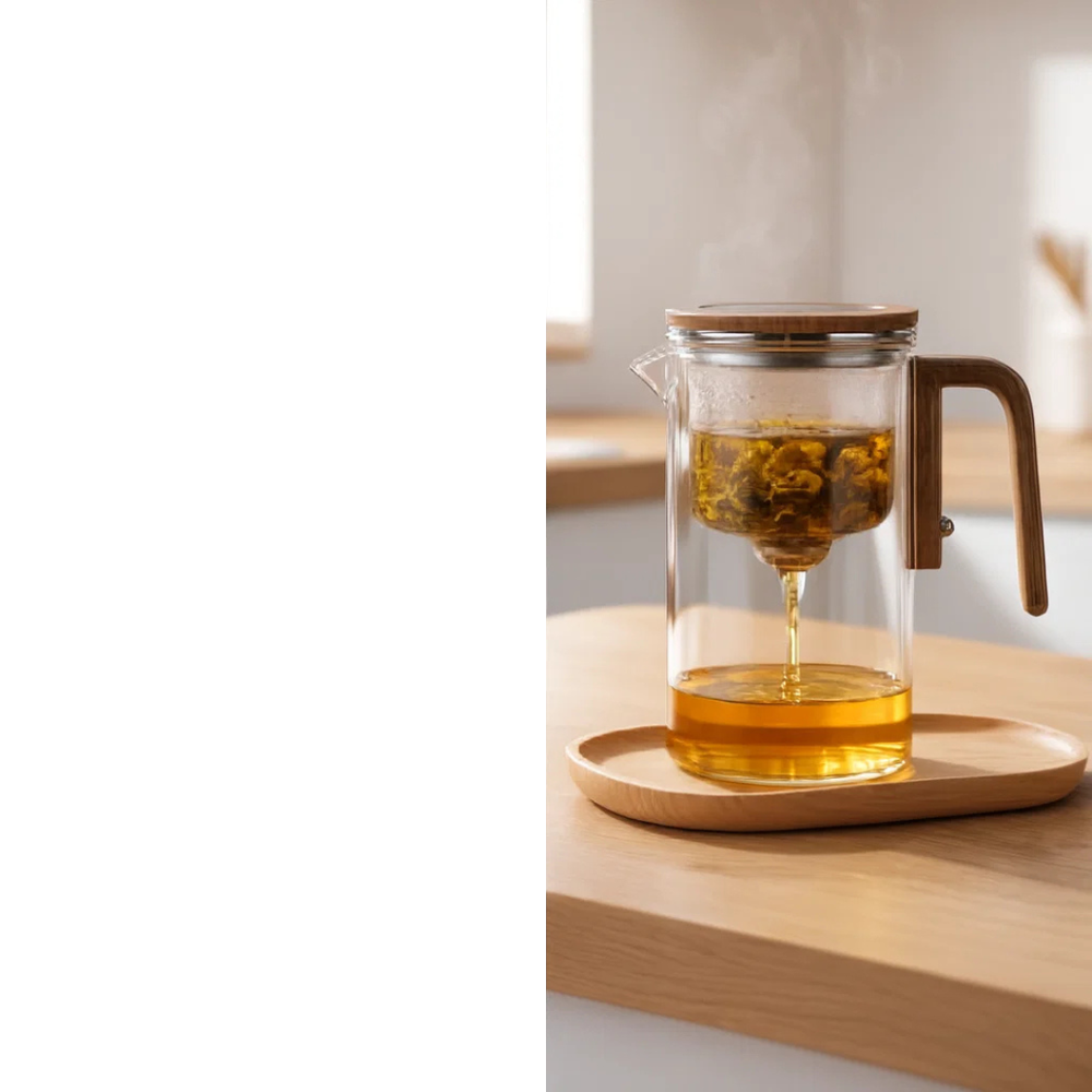 Monica, 64 Jahre, berichtet: Ich trinke seit Jahren täglich Tee – zu Hause wie auch im Büro. Was mich dabei immer gestört hat, war weniger der Geschmack, sondern der Aufwand: Teesiebe, Tropfen auf dem Tisch, Blätter im Becher oder Tee, der zu lange zieht. Irgendwann habe ich gemerkt, dass das eigentliche Ritual dabei verloren geht.