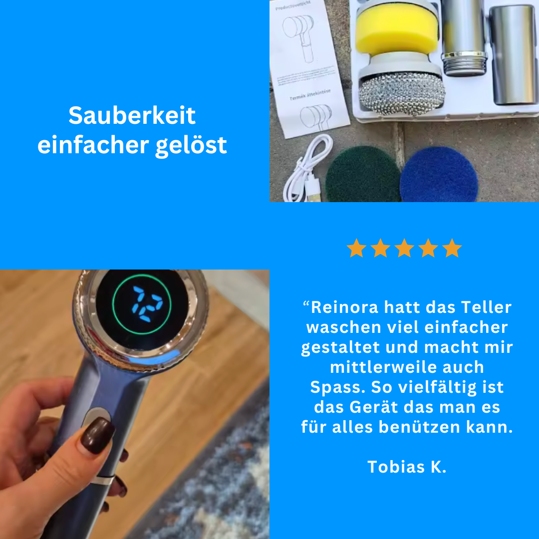 Diese kabellose 5-in-1 Reinigungsbürste vereint kraftvolle Rotationsleistung mit modernem Design und maximaler Benutzerfreundlichkeit. Dank LED-Akkustandsanzeige, USB-C-Ladefunktion und fünf vielseitigen Aufsätzen reinigen Sie mühelos Geschirr, Pfannen, Fugen oder empfindliche Oberflächen gründlich und zeitsparend. Der ergonomische Griff sorgt für komfortable Handhabung, während die starke, zugleich leise Motorleistung selbst hartnäckige Verschmutzungen zuverlässig entfernt. Effizient, hygienisch und durchdacht – für ein sichtbar sauberes Zuhause mit minimalem Aufwand. ✨